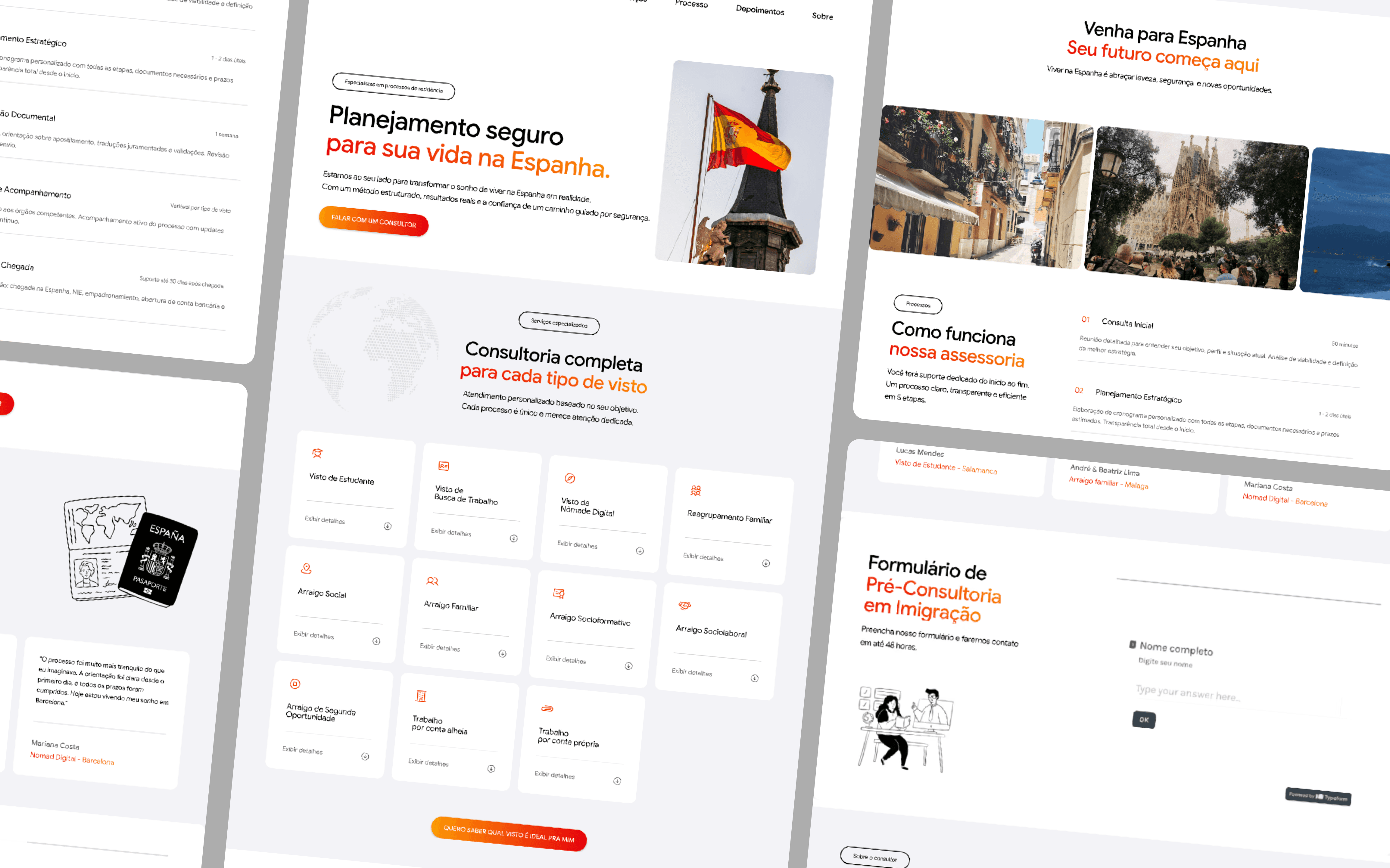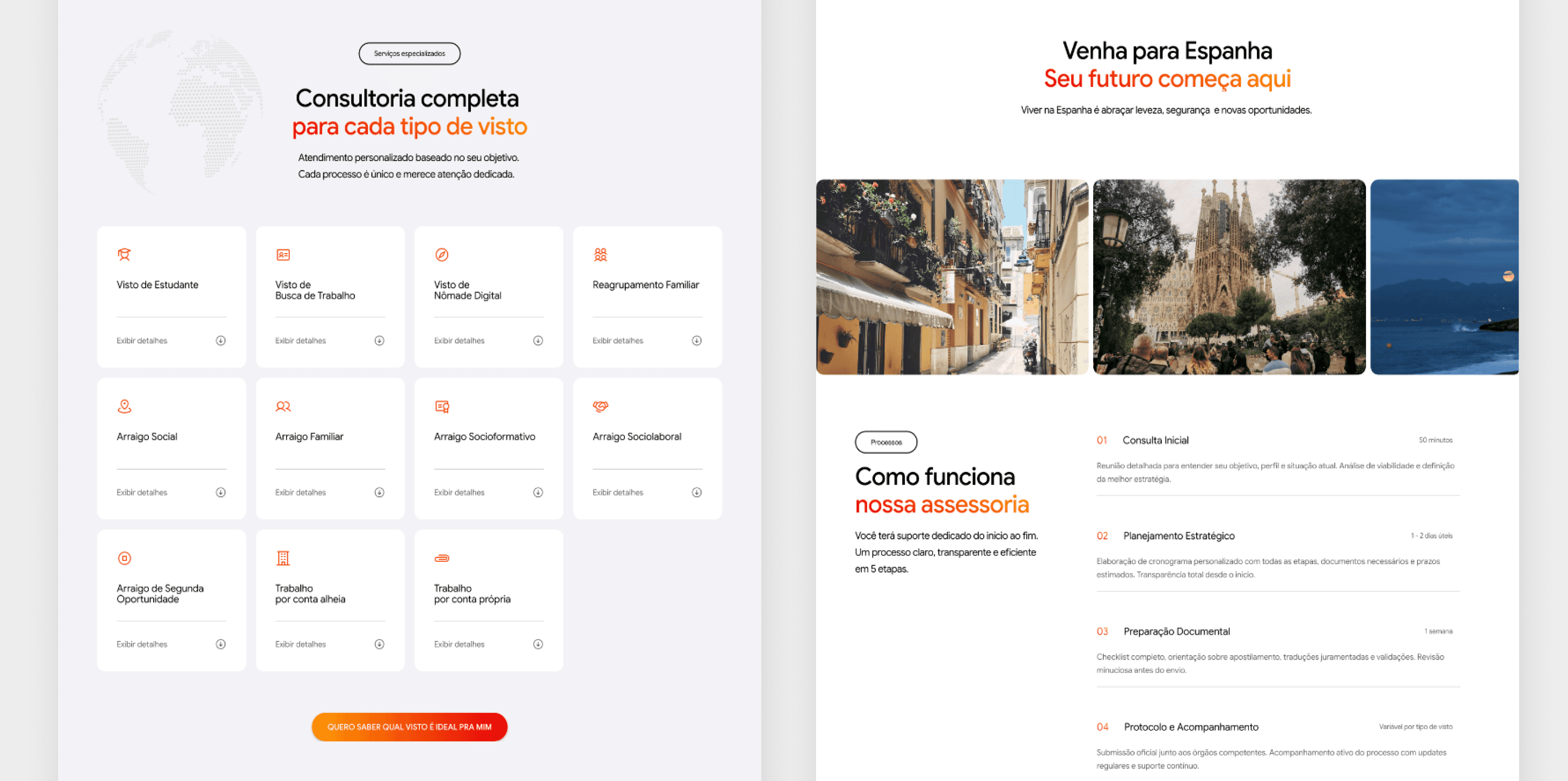 O cliente precisava explicar seu trabalho de forma clara e acessível, detalhando o passo a passo do processo e organizando os diferentes tipos de vistos, cada um com prazos, níveis de complexidade e requisitos específicos. O desafio era fazer isso sem depender exclusivamente de atendimento manual, garantindo que o cliente entendesse rapidamente seu cenário e os próximos passos.