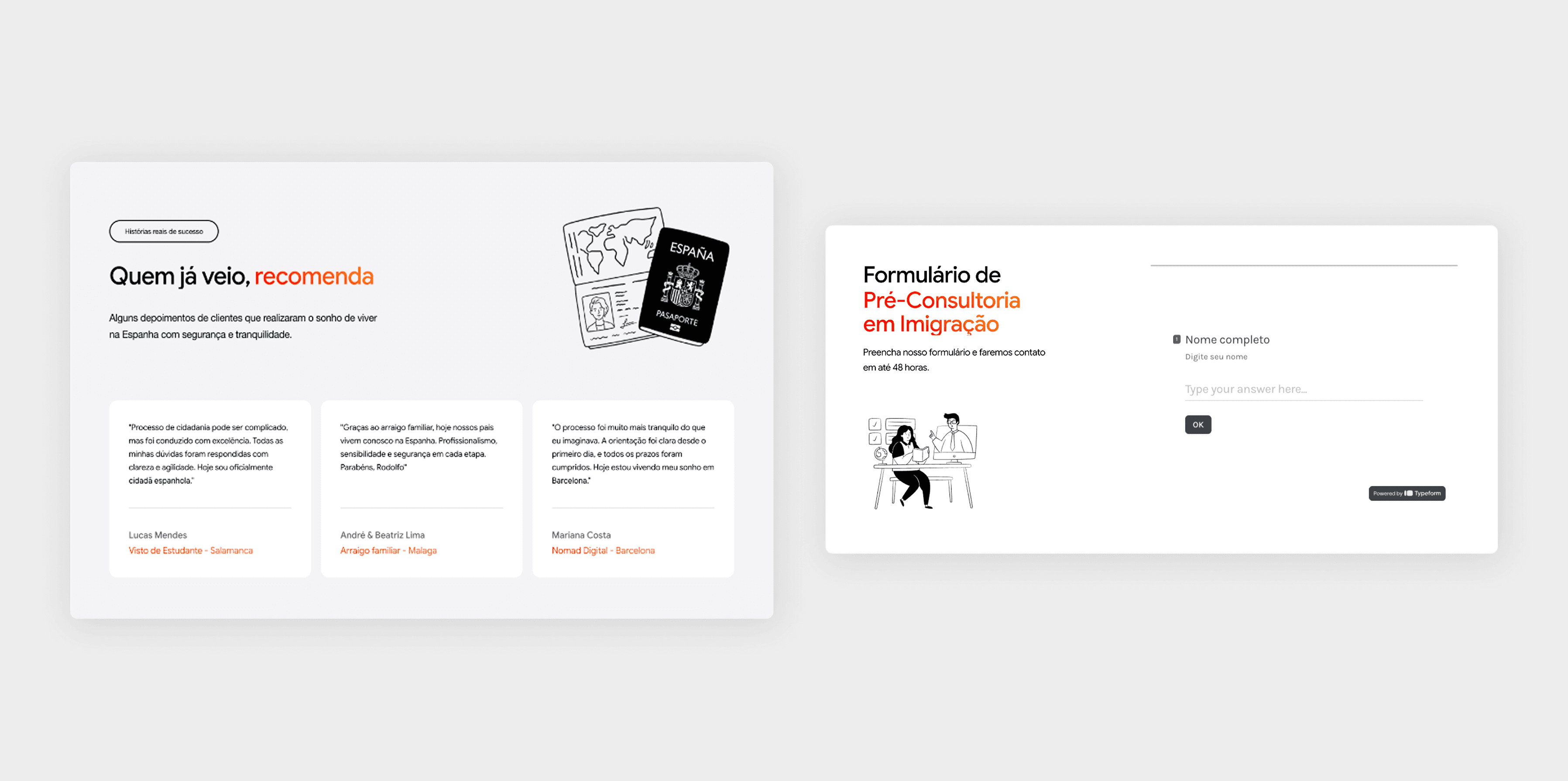A solução foi estruturar o site como uma plataforma de entendimento e triagem: o visitante identifica seu perfil, preenche o formulário adequado e entende, logo no primeiro contato, qual caminho seguir. O atendimento direto fica focado apenas em dúvidas específicas e na contratação do serviço, tornando o processo mais eficiente para o cliente e para o consultor.